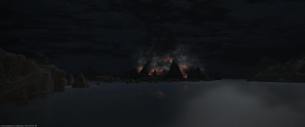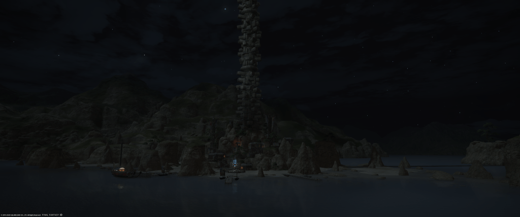 FFXIV has tried this before with Heavensward’s Azys Lla, a zone that has an interesting tech-futuristic aesthetic but an unappealing color palette and some iffy navigation without having unlocked flying, which is mercifully easier in that zone than elsewhere. Azys Lla was, for me at least, a fun delight the first time but one that quickly wears thin, where The Tempest has a beauty and intrigue about it that make it last the test of time. A lot of the game’s non-secret zones do this too – the Ruby Sea has a sort of calm beauty about it, Coerthas feels realistically desolate but with all these clues to how life once was in the frozen wastes, and the Dravanian Hinterlands have some measure of appeal to me as well.
