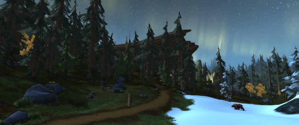 But the question I might pose is simple – what makes these zones beautiful to me? Well, one of the key points I often think of is how a zone portrays a sense of fantasy while still staying true to the theme of the game or given piece of content. I love all of Wrath of the Lich King because the zones rose to a difficult challenge – portray Northrend from WC III, but do so without it being a monochromatic trip through snowy places – and it met the challenge well. Each zone has a degree of adherence to the overarching Northrend biome, but breaks in believable, lore-infused ways. Sure, a Sholazar Basin might not be realistic to our reality, but as a Titan playground in the middle of the snowswept north, it works in WoW.