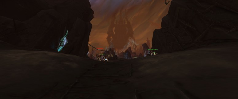 Also, worth stating, did you know WoW can have dangerous ground? No, not lava, not falling from high heights, GROUND SPIKES. There is a section where ground spikes suddenly appear and take a not-insignificant amount of your health if you stand on them. I can hear you now, “well, don’t stand on them!” Yeah, no shit Sherlock, but the game funnels you down to the next quest so effectively, and adds these so late in the zone, that you are just thinking of your wife and kids and how much you love them and how much you wish this nightmare would end, and then the game pokes your character in the feet, and it surprised me so much I thought it was a mob attack (because I had an 8 mob paintrain riding my ass), because all the mobs caught me because I can’t mount and I ran the tightest line I could through them to avoid aggro because I was already fucking sick of the Maw and I got to 5% health before they evade bugged and left me be, so I sat on the spike bridge in a safe spot eating food wondering if I should just cancel my sub now or if I should at least try the zone at 60 to see how I feel.