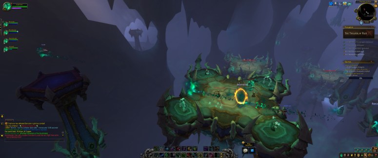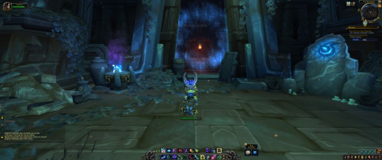 This is a trope of Blizzard writing I detest. Focused on “moments” rather than a tight, cohesive story that is great as a whole, Blizzard writes a thing that is cool in isolation but utterly fails when stood up and connected to the rest of the plot to which it ostensibly belongs. Sure, yes, I bet this is going to be a slick moment when it is not just being explained to me in the game, but then, I’ll be left with the same question – why is it that Sylvanas and the Jailer are not pushing their advantage and conquering Azeroth? Later in the story, we’re told the Jailer cannot escape the Maw, but if his forces can, he doesn’t really have to, does he? The rest of the Maw starting experience, from a lore perspective, is fine enough – until the end. At the end, we once again smack into the reality that the story is ignoring. We freed those leaders but we can’t take them back with us to Oribos via the waystone we find, making the whole thing…pointless! During the empowerment of the waystone, we also learn that the Jailer has a limitless army and the dialogue of the NPCs at this time directly draws a comparison to the Legion, which just brings me back to…why? Why are these death monstrosities here, harassing us, when they could be massing at the tear between realms and invading Azeroth, conquering our world while it is in a relatively weak state? Again, it is just a “cool moment” – we get to feel powerful for fighting waves of simple Mawsworn while the Jailer taunts us, and then the game ports us away, and short of hearing his name, we don’t see him again until level 60, same with the leaders we just rescued. Aggghhh!