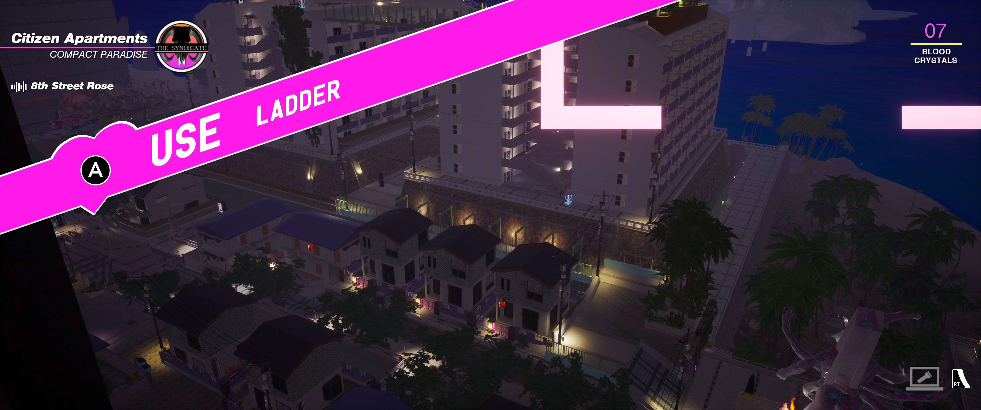 In practice…you run around exploring for Blood Crystals, being asked to make a myriad of hard choices about how to spend your early currency and running around the island instead of fast-traveling because it is too expensive and you don’t have enough money to be doing that. Eventually, it gets easier, both as the inertia of longer play means more fast travel points and as you have more money to use fast travel, or have more of the foot bath upgrades, like air dashing and double-jumping. There’s a further rub here though – navigating the island is an absolute chore in many cases. The map doesn’t make any effort to show you more than the district you are currently in relative to the full island – no impression of the direction you are facing, how close to the district boundary you are, and the map is a pixel-y mess of the actual island. To make matters worse, the island’s main areas are urban and very vertical, with layers of navigation to account for, and to make matters even worse, the fast travel uses naming conventions that aren’t all that clear early on, until you’ve seen the area a handful of times. This is something I would love to see an update for – just add a minimap to the HUD and visual representation of the fast travel points, and you’d be halfway to a decent navigation experience.