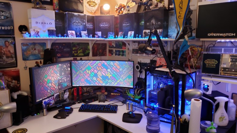 Lastly, a few practical concerns – I want/need to be able to use a microphone arm for my Shure SM7B, which has two different pieces of hardware in its interface chain on the way to my PC, along with a mounting arm for my iPad Pro, to be able to use it…well, mostly for Twitter and WordPress notifications, but sometimes for additional video content, background elements on some streams, and just to have as a backup for when I want to watch a YouTube video without turning on my PC or using my phone. My cable management at the last apartment was dialed in nicely, but here, it has been a bit of a sprawling mess as I moved to set up my desk quickly and get it operational over ideal. I don’t currently use a UPS backup for my system or peripherals, and while it has been okay thus far, I understand the risks and with the amount I’ve spent on my new system, I absolutely want that protection as a part of the setup. Lastly, after building one for my wife recently, I’ve been more interested in a sit-stand motorized desk, because I spend a lot of time at my PC and the health benefits of being able to stand comfortably at my desk are something I’d like to try.