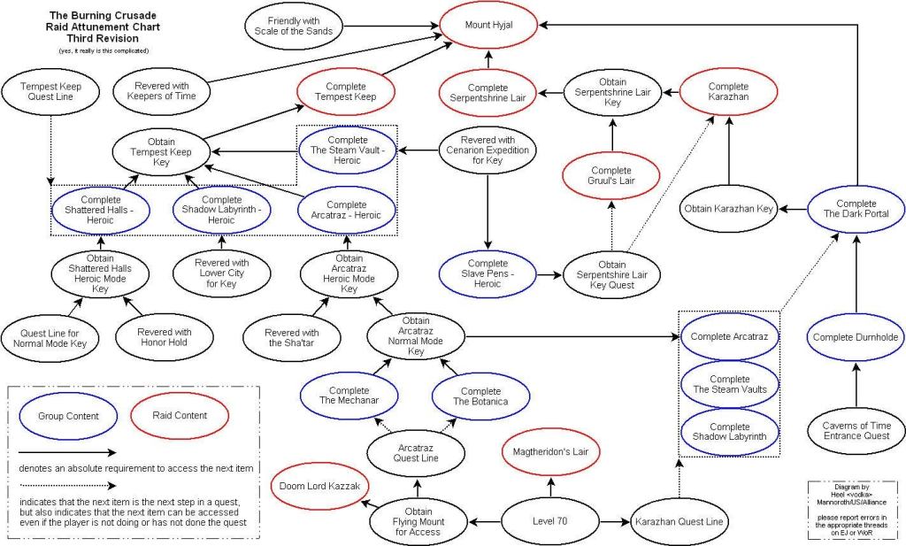 For me personally? TBC is the expansion I played the least. When I was leveling through it, I enjoyed it well enough (it was also my first Blizzard beta thanks to having been live at Blizzcon 2005), but I never got into the endgame of it. I didn’t run any Heroic dungeons, I stepped into Karazhan twice and Gruul’s Lair once, and I never really got into the flow of content. TBC was definitely a sort of petri dish for what WoW would become in later years – there was a currency system for gear that advanced to the better-tuned Emblems in Wrath of the Lich King, reputation was made to matter more but it also gated more content than before, the raid attunements in vanilla went well enough that the team went hog-wild with them in TBC, such that players had to bust out Microsoft Visio to make flowcharts for all the requirements to simply partake in the endgame content of the expansion…