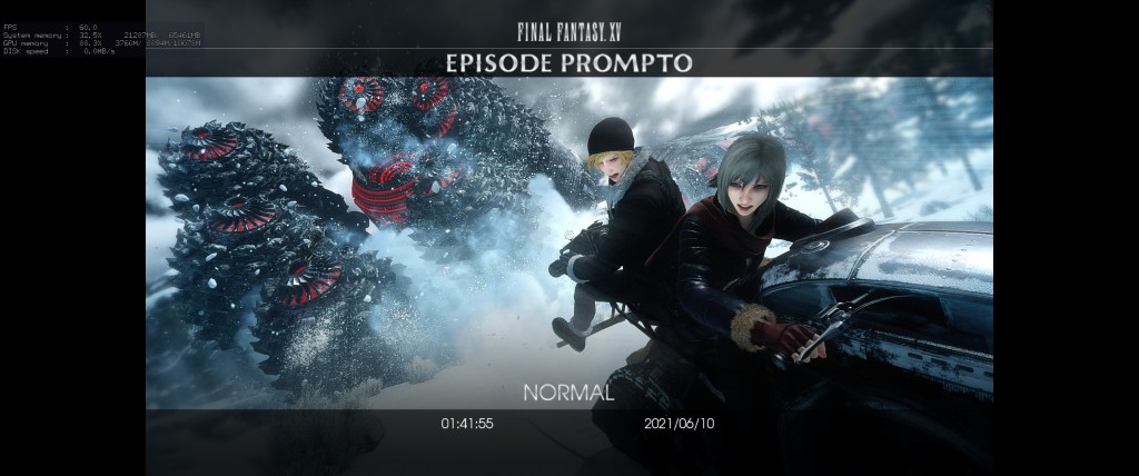 Episode Prompto: Somewhat out of order, despite being the last in the story to have his departure, Prompto gets the second DLC story. His story is an interesting one to an extent, and it integrates some of the missing characterization that was only in the Brotherhood anime (fat Prompto!) while also explaining a fairly significant lore hook that is explored further in Chapter 13 of the main game. That reveal is also made in the main game, but it is almost a throwaway there even post-story patch, where here, the reveal and Prompto’s reckoning with it has room to breathe. Plus, it has more Aranea and that’s a good thing. Gameplay-wise, Prompto’s combat focuses in heavily on aiming and fighting at range, so he cycles through different guns from the forces of Niflheim to handle different situations. Like in the main game when AI controlled, though, Prompto sucks in combat and he will suck down consumables left and right to live. Fortunately, without shops, the game gives you a decent number of them, and as you get more used to his playstyle, you can do pretty well with him, although the last fight with Prompto free-roaming is a challenge that can feel a bit excessive. His combat style is more interesting than the main game’s style, with ammunition coming into play for the more effective weapons, the aforementioned aiming mechanics, and the way the game encourages a mix of stealth kills and ranged shooting. I still don’t like Prompto as a character much, but the episode here does a good job making him sympathetic and is probably the second-best story of the episodes.