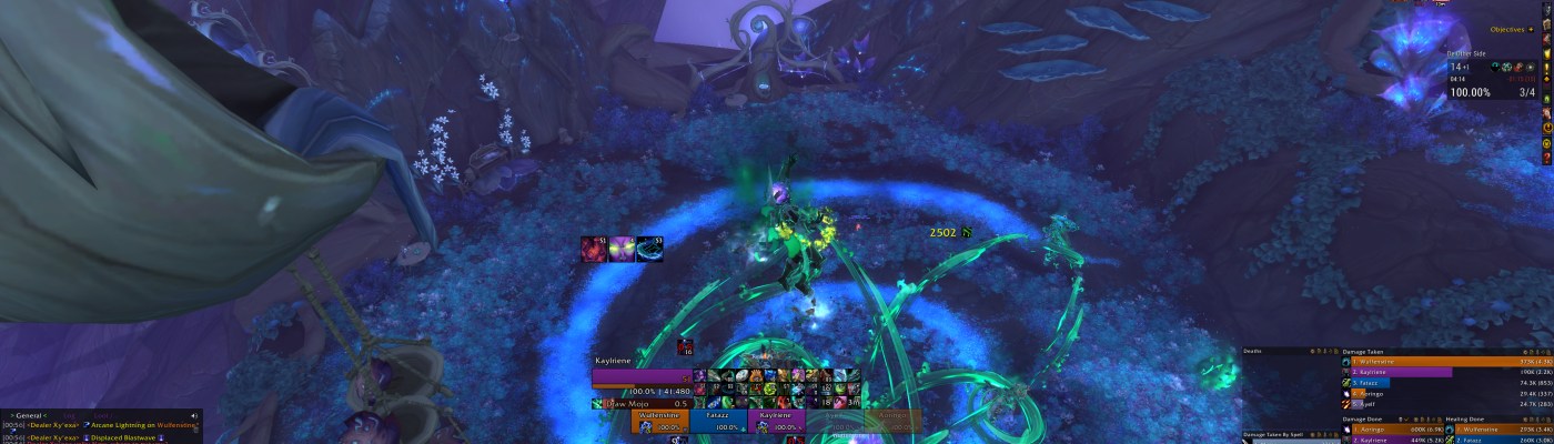 There is one other big bad issue this week, and that is with Quaking. Quaking is a nuisance at best and can pull apart lesser groups by causing big spreads, extra pulls, and friendly fire. The Tormented lieutenants add a fun twist to this, however. On nearly all of them, area denial is a big part of the design – Arkolath leaves fire puddles, Coldheart does Frost Lance, Cold Snap, and Biting Cold, all of which force you to reconfigure around different parts of the area you pull him in. Varruth requires stacking for the Wail of Terror, and Soggodon pulls the tank in, and then also pulls and shackles the entire party for his main trouble mechanic. When going into each of them, you need to manage the pulls differently to account for Quaking – Arkolath and Coldheart largely work as they normally do because players can be spread and just have to be mindful of positioning on things like Cold Snap, Frost Lance, or the fire puddle cast to ensure readjustment can be done to account for Quaking. However, Varruth is much better done with smaller stacks – splitting the party into two stacks can help to mitigate some of that Quaking damage, but you’ll likely take some. Soggodon is the worst for it, because his group grip and shackle means if you don’t hit the shackles in time for Quaking, you can have a 5-stack of it, which is almost certainly a wipe. Using the Quaking timer WeakAura is a good idea to manage it, because if you can time out the pull to ensure no nasty overlaps, it all falls together pretty neatly. So far, I haven’t had any runs where a sterling timer was scuffed due to such overlaps, but it definitely has created stress for healers and some “oh shit!” moments where I’ve been very afraid of bad things happening.