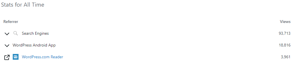 Early on, the vast majority of my views were from two places – my friends and other bloggers on WordPress.com. I won’t say WP.com’s discoverability tools are excellent or anything, but they work well enough – if you pop a search into the homepage, you can find a pretty good list of blogs, and if you read some posts, the suggestions from other sites will push you all around the various content hosted using WP.com.