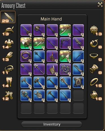 So it’s not 100% perfectly clean and clear, but I struck a balance on keeping some things that might end up being useful while clearing out a lot of stuff and setting myself on a path for success where my bags won’t immediately fill up. My retainers are down to around half-empty (and they’ll get more space when HQ mats turn NQ on Friday!), my Chocobo Saddlebag is almost completely empty, my Inventory is down to rank 7 and 8 Materia for melding and Well-Fed foods for EXP bonuses while leveling, and my Armory Chest is peeled down to essentials. The progress has been solid, aided by a few upgrades to gear and the sale of a lot of Shadowbringers materials to bring in that extra cash.
