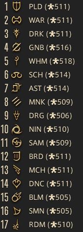 Here’s my current state of affairs on item level (also, obviously Blue Mage cannot be at 510 with a level cap of 70, and I’m only level 63 on BLU as-is):