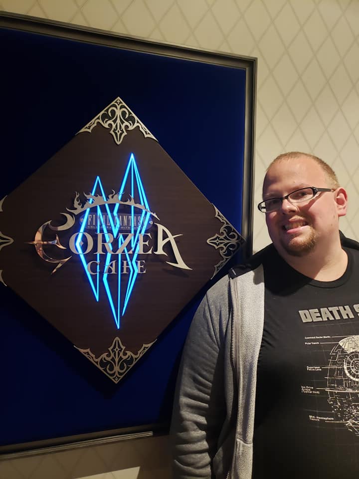 So, the Eorzea Cafe. Square Enix (and Japanese media in general) have this thing about branded eating experiences, such that they are fairly commonplace. Square Enix sometimes hosts their own at company cafes (they have a couple) and sometimes partner with a third party for a longer-term engagement. The Eorzea Cafe, which has three locations in Japan (Akihabara in Tokyo, Yokohama, and Osaka) is a partnership with Pasela, who does branded dining for a lot of properties (when we went in 2019, the floor with the Eorzea Cafe was shared by, no joke, a Minions cafe). While some of these are just restaurants you can go to and be seated normally, the Eorzea Cafe is a ticketed attraction. You pay an admission cost of 1,000 yen per seat to reserve a table (the ticket cost includes a drink and job coaster) and your reservation is for one of a handful of 2-hour limited blocks during the day, with both lunch and dinner time options available. When we went, you had to navigate the Lawson Loppi ticket site using Google Translate to reserve, then go to a Lawson’s convenience store terminal to pull up the reservation and pay (likely also needing Google Translate’s lens function to make sense of it unless you know Japanese), receiving the tickets there. They’ve since switched to an online ticketing site that includes English navigation, lucky you if you can make it into Japan to try going!