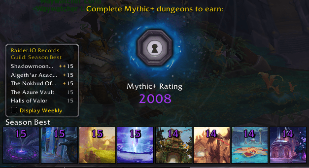 Some of what I’ve described here probably sounds iffy or bad if you’ve never done keys, and I can understand that viewpoint. I want to emphasize that I had a ton of fun and personal fulfillment from doing this, and it reaffirmed that beyond any self-deprecation (or external hurling of insults as the case may be!) that I am still a good player of WoW and gave me a feeling of accomplishment, especially coming back to do this after a nearly full year not playing WoW at all. While initially, I didn’t think much of setting a timed goal for getting KSM, once I was about halfway into week one, I knew I was going to push hard and I set a month as a soft goal to reach. Once I got into this week, I knew I could get it before reset based on my rating if I went harder on it, and I spent a lot of this week pushing beyond my comfort zone – higher keys, tougher stuff, dungeons I’m not a fan of as my first 15 (seriously, would not have ever thought Nokhud would be my first timed 15 of the expansion).