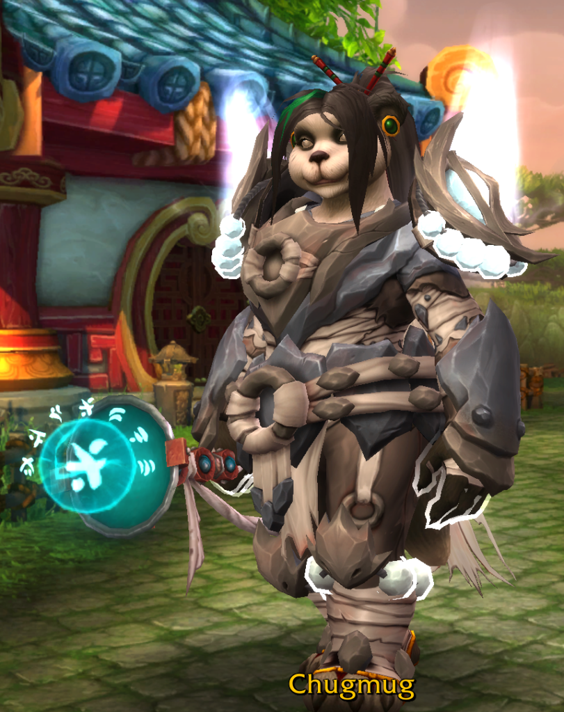 My original Monk, who is now my dedicated Mistweaver character due to how different the stat priorities are (Haste actively sucks on both Brewmaster and Windwalker, but it is number 1 on MW!), I leveled her since she was already 60 and already MW at the end of Shadowlands and it made sense to gear up to do some healing. She’s my bottom priority because I’ve played a good amount of Mistweaver this expansion via my main Monk, and because I’ll be getting all the Monk-specific looks via my main, but I want the option!