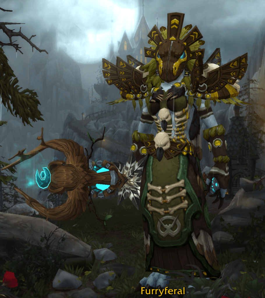 The real funny part if that I have never played this character in Feral, lol. Anyways, the plan for the Druid is to go Restoration and get some good hands-on healing practice with one of the best overall key healers, and to get the cool tree-dragon armor in the Autumnal colorway.