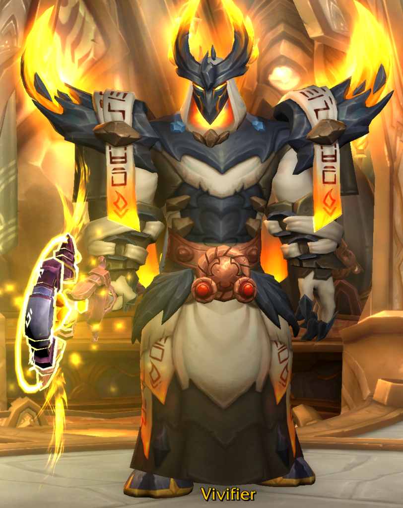 It’s an Evoker! I’ve enjoyed playing Evoker, particularly Devastation, in Season 1, such that she was my second KSM, and since a couple of my project raiders are on the spec, it helps me in raid leadership to better understand the spec and how it plays, even if dungeon play is not a neat 1:1 mapping onto raiding. Plus, tier set looks cool – do I need more?