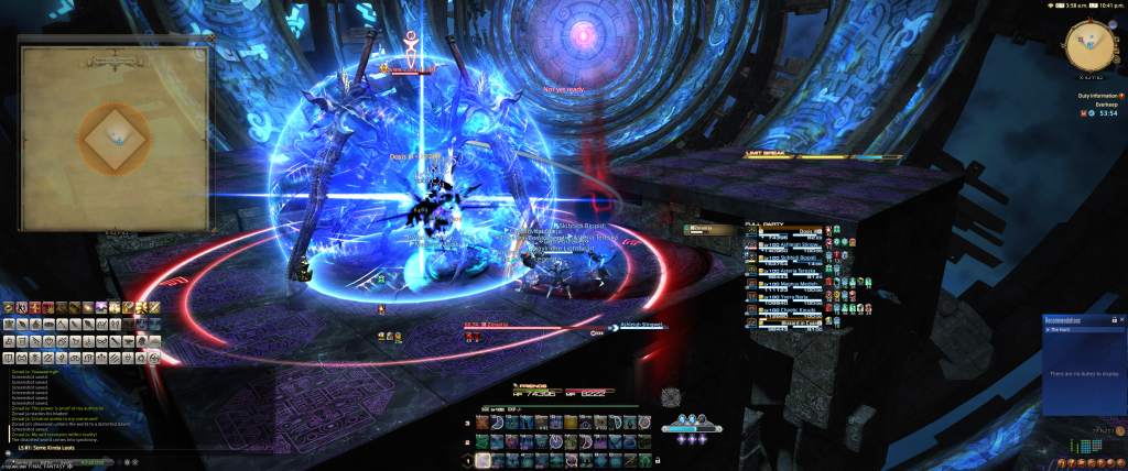 The two new jobs, Viper and Pictomancer, have unique gameplay loops they get to mess with. Viper has a two-button baseline combo that modifies by step, with a debuff and two buffs to maintain through correct execution of the combo, and while the positional requirements flow from this, it at least has an easy way to note which is required at a given moment – yellow is for flank positionals and red is for rear, and this color coordinates with the base action button you will bind (the big oGCD combo is kind of a mess, though!). Pictomancer revolves around preparation, requiring that a player prep their motifs prior to a fight (where they are instant cast) for maximum DPS, creating creature motifs for big spells, a hammer motif for instant-cast movement capability, and then rotating between additive and subtractive color palettes to cast a 1-2-3 combo of filler that expands to a finisher, not too dissimilar from Red Mage in a manner of thinking. Both require a certain amount of thinking about how you bind and set your hotbars and track your buffs and prep stuff, but a lot of that confusion begins to melt away with some modest effort at playing them. I’ve been playing a small bit of Viper and plan to eventually do the same for Pictomancer, but both seem to be interesting new additions that have their own unique quirks.