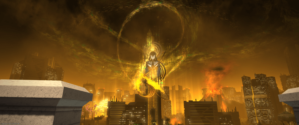 The entire last arc of Dawntrail is intended to be a love letter to Final Fantasy IX (and to potentially drum up interest in that oft-rumored remake of it!), and in so doing it has some weirdness around it. The idea of a reflection suffering a Calamity and persisting, finding a way to use it to empower them, and then fusing to another reflection (or the Source, as the case is) is a pretty cool concept and one that obviously opens up the ongoing plot thread around Y’shtola seeking fervently to find a way to the First, which also creates a contrast between the Voidgates of the Thirteenth (inelegant tears in the aetherial bonds between worlds) by giving us a comparison (fused, crafted gateways between worlds that are functionally seamless). The whole of Heritage Found, Solution Nine, and Living Memory are all designed to tell a story of just how long Alexandria persisted under the conditions of the levin calamity visited upon them, with the proper Alexandria areas being medieval and old architecture (all pulled straight from Final Fantasy IX!) while Living Memory’s main areas and the contrast of the Electrope-infused areas and Solution Nine with that older architecture portray the story of how Sphene’s reign evolved from benevolent human ruler to artificial creation designed to maintain order while working towards the goal of preserving Alexandrian life over all others.