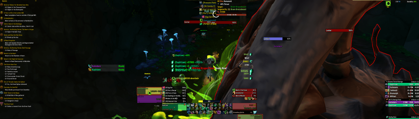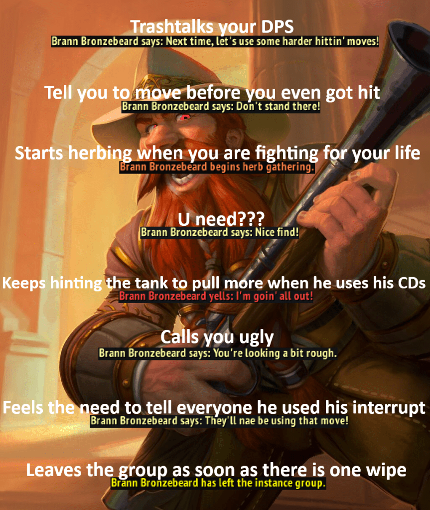 The Mage Tower circumvented this by being tailored to each class and spec, such that each spec, even when sharing the same challenge with other specs, had some unique tweaks that allowed it to be on a roughly equal footing. However, Horrific Visions, Torghast, and now Delves have all suffered the same problem – there’s only so many mechanics in WoW that you can reasonably expect the average player to do and those mechanics mean a design that fundamentally favors melee specs and disadvantages casters and especially healers. Interrupts are most common, but there’s also forced downtime (moving out of the stupid Sporbits), which is tough for melee but still harder on a soloing caster, and defensive checks (where melee specs are often again more sturdy and still have defensive abilities to press to mitigate). Exacerbating this, Brann can be two of the three roles in the holy trinity of MMO design…but he can’t be a tank, which means the player is always the tank unless you have ways to shed or redirect threat to Brann (Fade, Misdirect, Tricks of the Trade). Brann brings some interrupt capability and some interesting utility, but the problem is that you can’t directly control him or give any sort of priority to how he should use things like his interrupt – so he helps, but he can also get in the way.