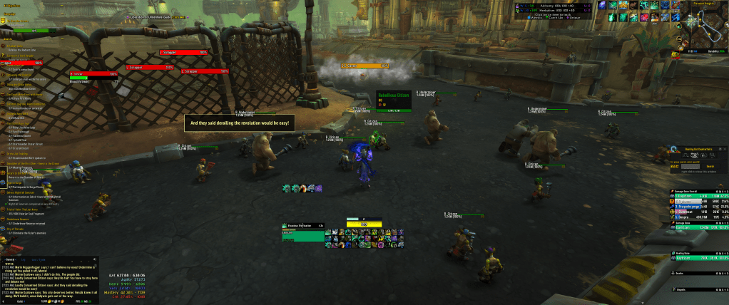 I really like Undermine. As a zone, it captures the essence of the post-Cataclysm Goblin race exceptionally well and feels wholly distinct from anything else in WoW. As the closest WoW gets to modern real-life architecture and technological progress, Undermine is a funhouse lens (not the inexplicably good world content trinket!) of our reality bounced back at us. Like, if the encroaching horrors of late-stage capitalism and fascism enabled and supported by corporate entities was fun and whimsical, it would be Undermine, instead of…uh, looking around, all of this. Undermine is pretty cleanly split into neighborhoods that you can follow with some time in the zone and has a road network that serves to connect the main 4 quadrants of the zone together with smooth, higher-speed transit lanes.