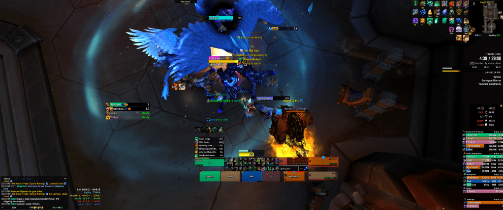 I don’t just say this to puff out my own chest (although, you know, I did it, hooray), but those +12 and +13 level keys require a higher level of aptitude than you might expect, especially in the TWW model where those high keys are both Fortified and Tyrannical. Trash mob spells you’d avoid interrupting at low level keys become lethal combos, like in a Rookery +13 where two Lightning Bolt casts back to back on me was an insta-death, and the failure penalty for not interrupting and using stops becomes death in a lot of cases. Most of the early big-fun Rookery pulls require immaculate CC and interrupt play to avoid getting wombo-comboed to death, and failing to use defensives when you are getting blasted by a DoT or the partywide unavoidable damage is going out often just means dying too. If you’re not good about using defensives and utility up to around a +10, you can kind of get away with it, but beyond that, your death is far more likely and more punishing. A lot of the groups I was in that didn’t go on to complete the dungeon were because a critical pull was failed and we fed the timer too much, so people would just hit a “gg” in chat and head home.