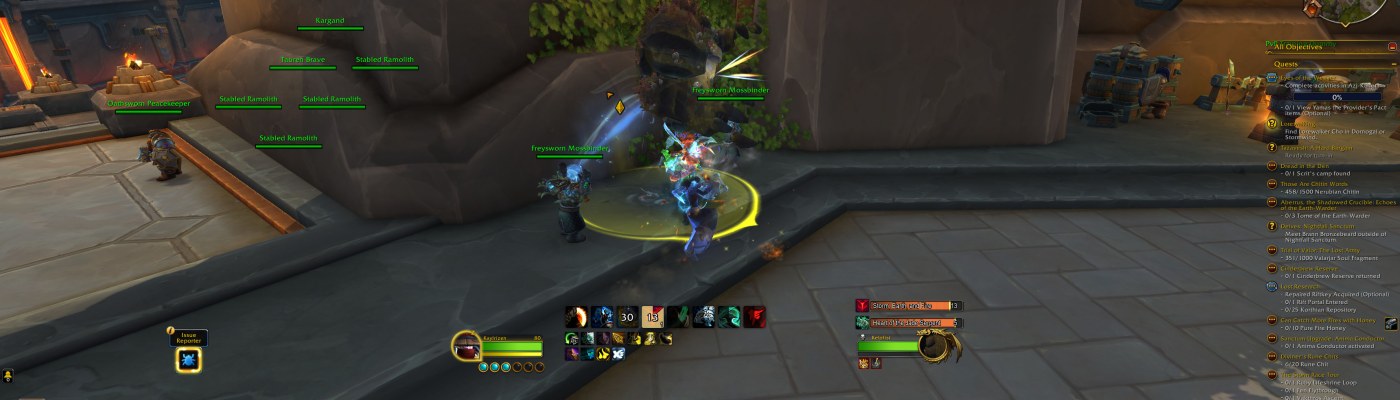 Blizzard could be designing a return to, let’s say, Legion-styled gameplay where the bulk of what your spells and abilities did were the baseline effects of those abilities and easily understood by reading the tooltip, but instead, the game is focused on trying to compensate for overly complex design by creating a button people can mash instead. I’m fine with that solution, if it wasn’t already clear – but I think it puts the cart before the horse a little bit. The problem is not that rotation helpers exist in the slightest, it is that rotation helpers have become a clearly useful addon category to people because the design of the game makes engaging with it fully harder to do for a novice.